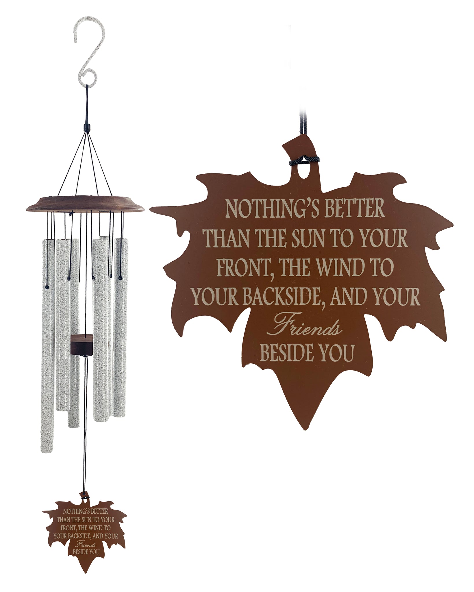 Friendship Gift 34 inch Variegated Silver Wind Chime with Rust Leaf Wind Sail Gift Set by Weathered Raindrop