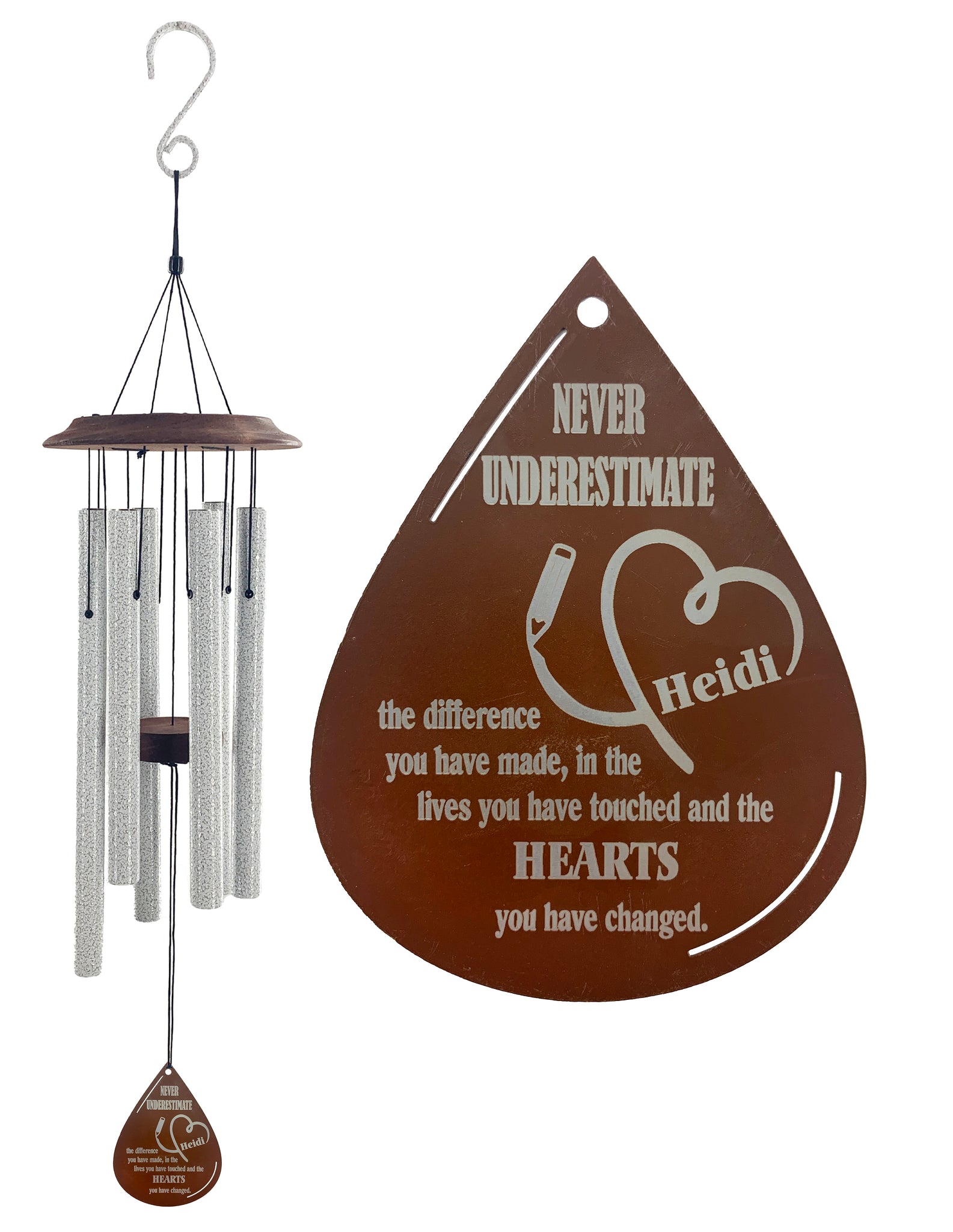Teacher Appreciation Custom Wind Chime Gift Set with Raindrop or Leaf Sail - Deep Tone and Personalized - Thank You Gift for Teacher by Weathered Raindrop
